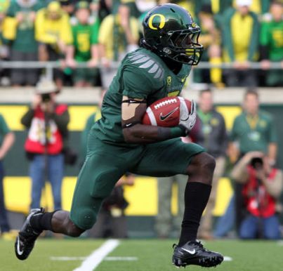 ![]() Los Angeles, Calif. Redshirt available BEFORE OREGON — Selected to play in the U.S. Army All-American game … A five-star recruit according to Rivals.com, Scout.com and 247Sports.com. while garnering four stars form ESPN … Considered the No. 1 athlete in the nation by Rivals.com and ESPN, and the No. 1 cornerback prospect by Scout.com and 247Sports.com … Rated as the No. 2 athlete by Tom Lemming of CBS College Sports … No. 5 player on the PrepStar Magazine “Dream Team” … Helped lead Crenshaw High School to 12 consecutive wins to end the season, including the CIF Los Angeles Section state title in 2010 … Rushed for 1,299 yards on just 114 carries (11.4 yards per carry) with 18 touchdowns, and made 16 catches for 359 yards (22.4 avg.) and four scores as a senior … On defense, made 42 tackles and had five interceptions totaling 122 return yards in 2010Click to view De'Anthony Thomas's complete biography |